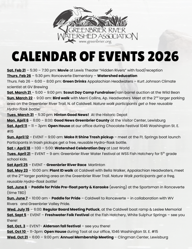 Greenbrier River Watershed Association, founded in 1990, is one of the oldest watershed associations in the state.